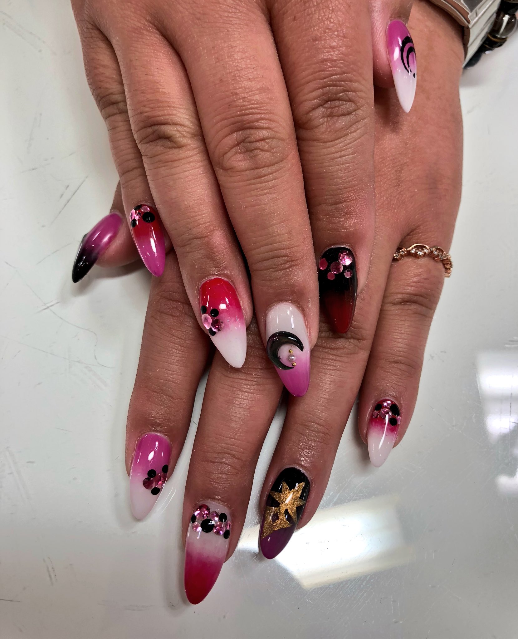 ピンク 黒 グラデーション ネイル